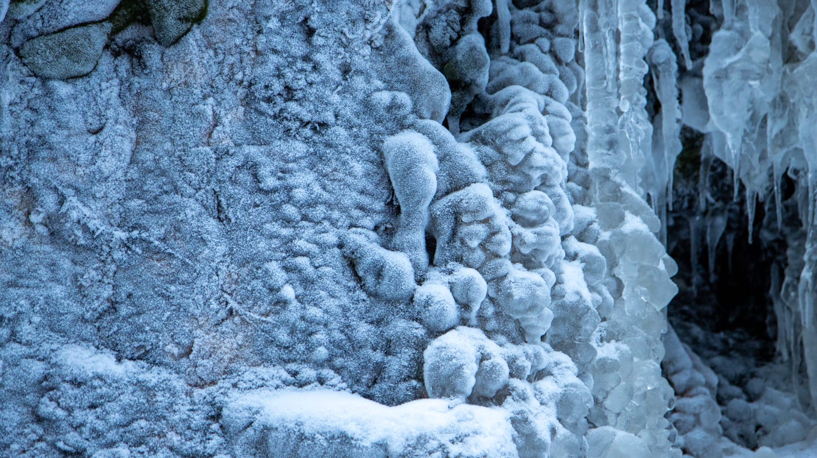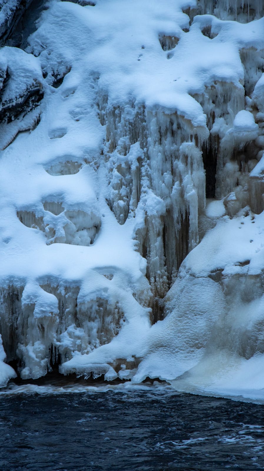 After breakfast, we went to visit the frozen waterfall. We've also seen it in the autumn time, so this was a familiar, but a new sight for us in the winter. You could still here the water gushing underneath the ice sheet.